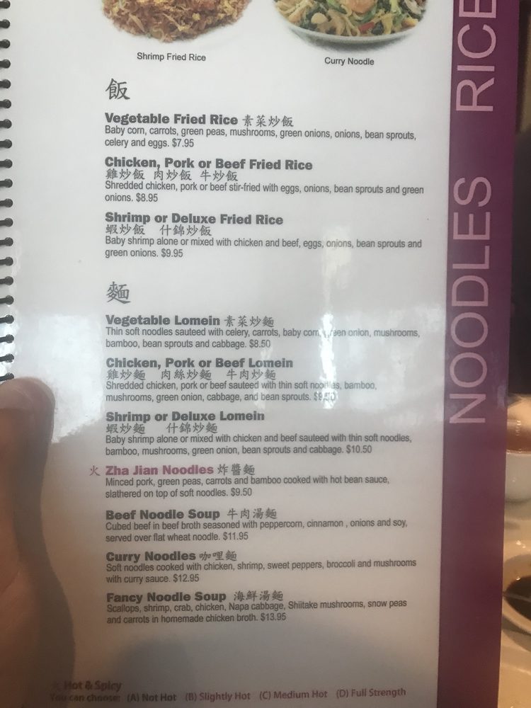 Minced pork, green peas, carrots and bamboo cooked with hot bean sauce, slathered on top of soft noodles.